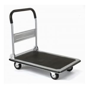 FOLDING PLATFORM TRUCK WITH SOLID STEEL DECK Comfort-grip foam handle folds down for compact storage. Non-skid vinyl surface, bungee twine and deck hooks to assist retain cargo. Integral vinyl deck bumpers defend doorways and walls. light-weight, quiet rolling and maneuvers simply on a pair of swivel, a pair of rigid 4" rubber casters. Click here to visualize our full choice of Platform Trucks. 29.00 L. 6.00 W. 19.00 H.